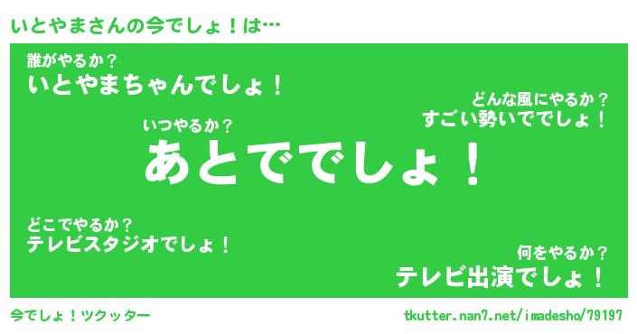 | 意味不明あだ名 | 『ペロリンいとやま』『永久保存いとやま』 |