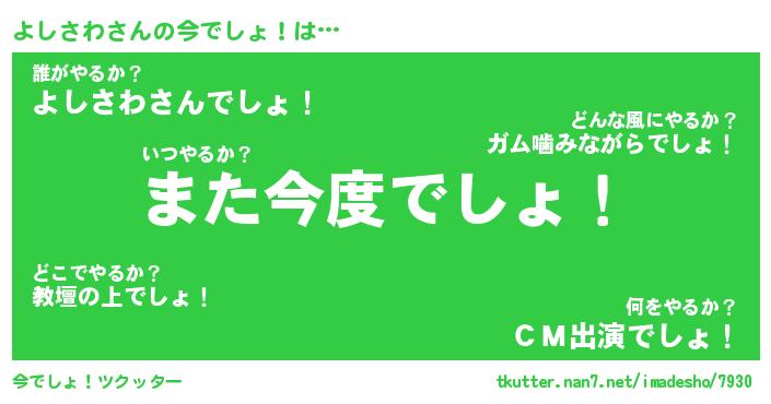 | 意味不明あだ名 | 『ペロリンよしさわ』『永久保存よしさわ』 |