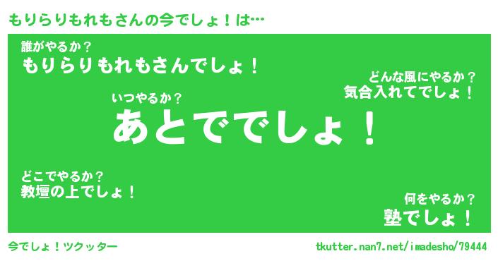 | 胡散臭い通販商品みたいなあだ名 | 『モテモテ間違いなし霊験あらたかなお札…その名も「もりらりもれも」』 |