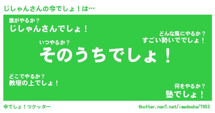 | 男性向けラノベタイトル風あだ名 | 『じしゃんの憂鬱』 |