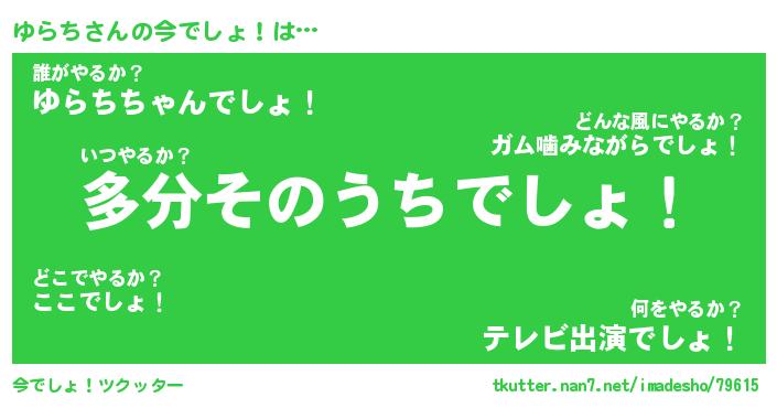 | ヒーロー風カッコイイあだ名 | 『スーパーユラチ』『ウルトラゆらちマン』 |