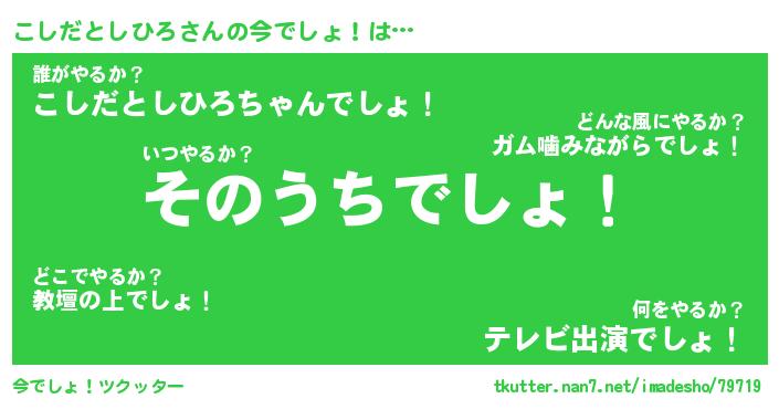 | 伝説のあだ名 | 『伝説のスナイパーこしだとしひろ』 |