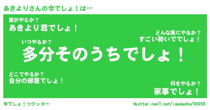 | 料理風あだ名 | 『節約★あきよりと油揚げの玉子丼』 |
