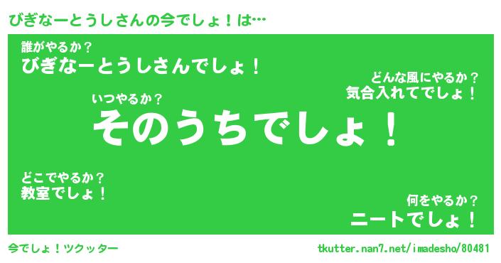 | 胡散臭い通販商品みたいなあだ名 | 『必ず成功する霊験あらたかなお札…その名も「びぎなーとうし」』 |