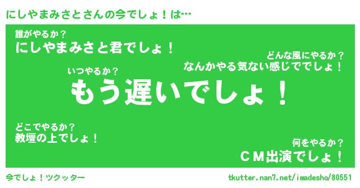 | ヘコむあだ名 | 『にしにー』『なまこ酢』『にしっ子』 |