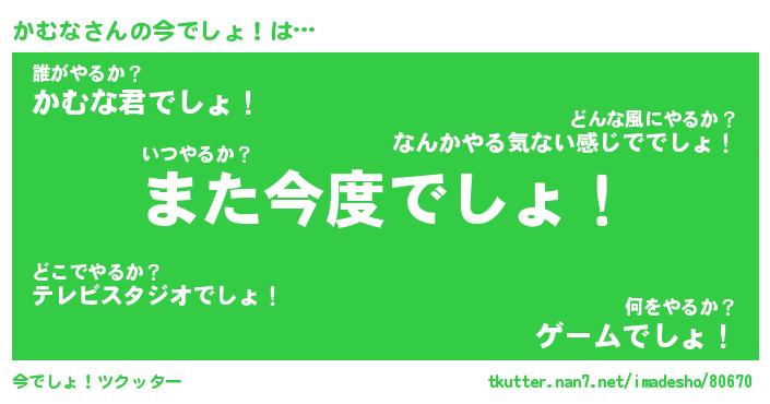 | ヒーロー風カッコイイあだ名 | 『スーパーカムナ』『ウルトラかむなマン』 |