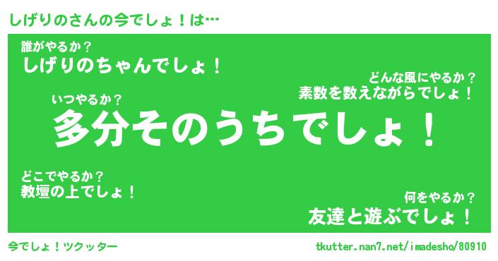 | 意味不明あだ名 | 『ペロリンしげりの』『永久保存しげりの』 |