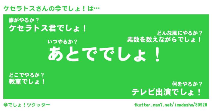 | ヒーロー風カッコイイあだ名 | 『スーパーケセラトス』『幻影騎士ケセ』 |