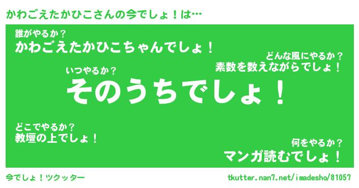| 胡散臭い通販商品みたいなあだ名 | 『必ず成功するブレスレット…その名も「かわごえたかひこ」』 |