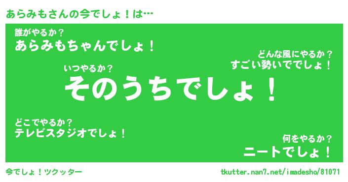 | 肩書あだ名 | 『あらみも店長』『あらみも国家主席』 |