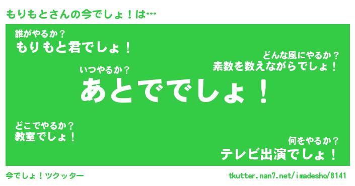 | 肩書あだ名 | 『もりもとCEO』『もりもと総理大臣』 |