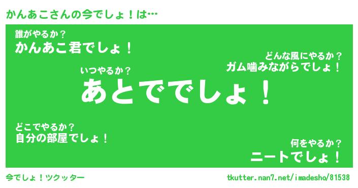 | 意味不明あだ名 | 『ペロリンかんあこ』『永久保存かんあこ』 |