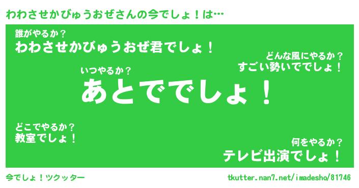 | ピコ太郎風あだ名 | 『ワコ三郎』『ピワ史郎』『ワワ三郎』 |