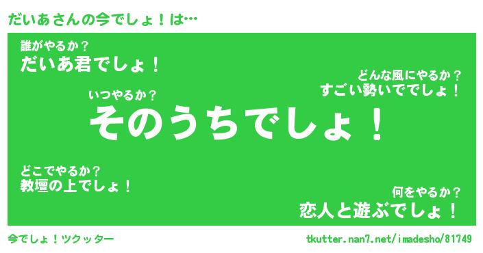 | ヘコむあだ名 | 『だいにゅー』『豆乳』『だいぷりん』 |