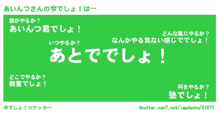 | 肩書あだ名 | 『あいんつCEO』『あいんつ総理大臣』 |