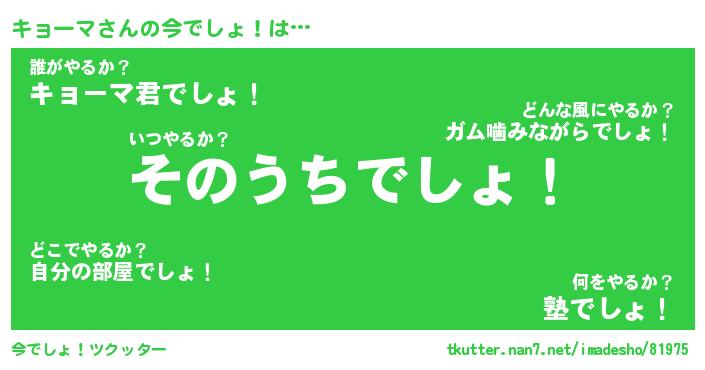 | 意味不明あだ名 | 『ペロリンキョーマ』『永久保存キョーマ』 |