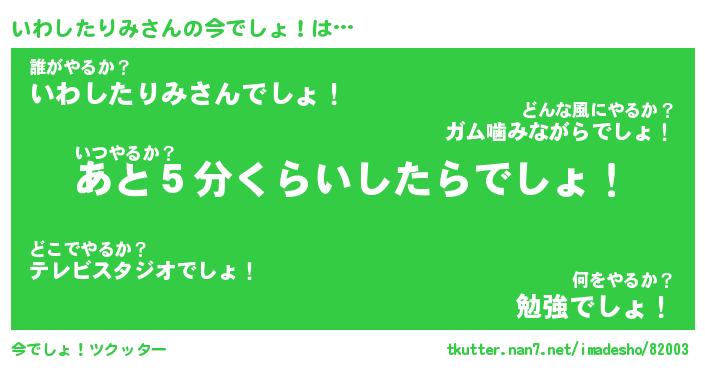 | 肩書あだ名 | 『いわしたりみ店長』『いわしたりみ班長』 |