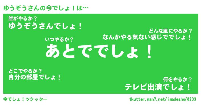 | 恥ずかしいあだ名 | 『プリティーゆうぞう』『ゆうっちょ』 |
