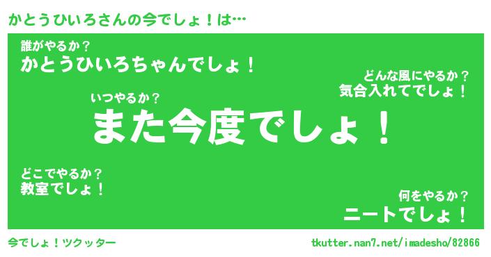 | 伝説のあだ名 | 『封印されしスナイパーかとうひいろ』 |