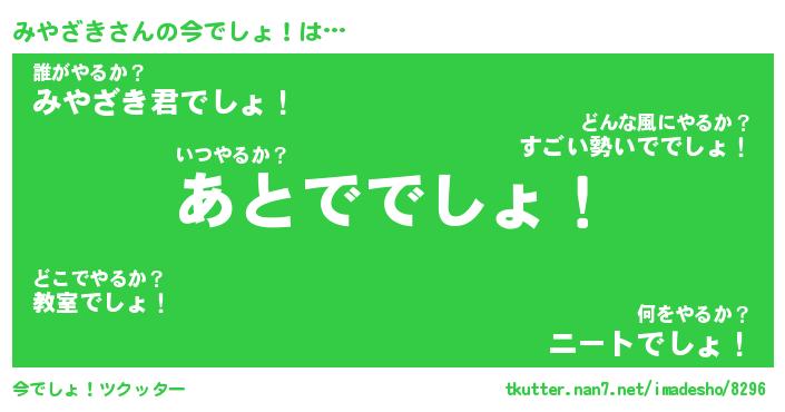 | ヘコむあだ名 | 『みやふぇ~』『豆乳』『みやを』 |