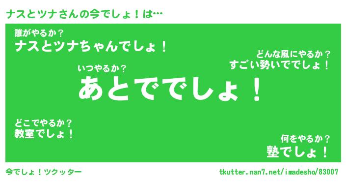 | 2回繰り返すあだ名 | 『ナスナス』『ナナスス』『ぬれぬれ』 |