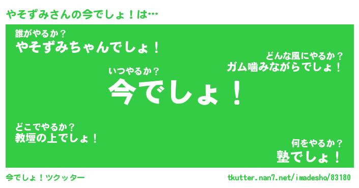 | 意味不明あだ名 | 『ペロリンやそずみ』『永久保存やそずみ』 |
