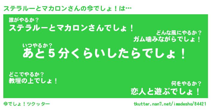 | 胡散臭い通販商品みたいなあだ名 | 『億万長者になれる霊験あらたかなお札…その名も「ステラルーとマカロン」』 |