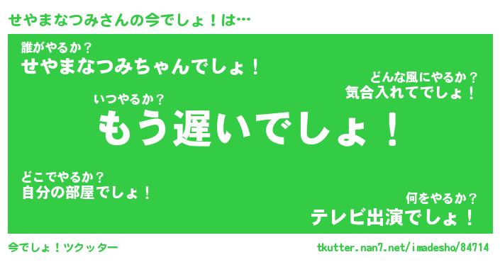 | 伝説のあだ名 | 『伝説のスナイパーせやまなつみ』 |