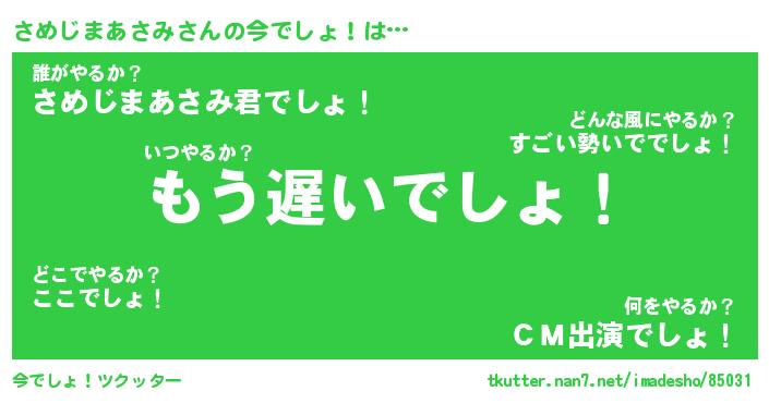 | ヘコむあだ名 | 『さめふぇ~』『豆乳』『さめ太郎』 |