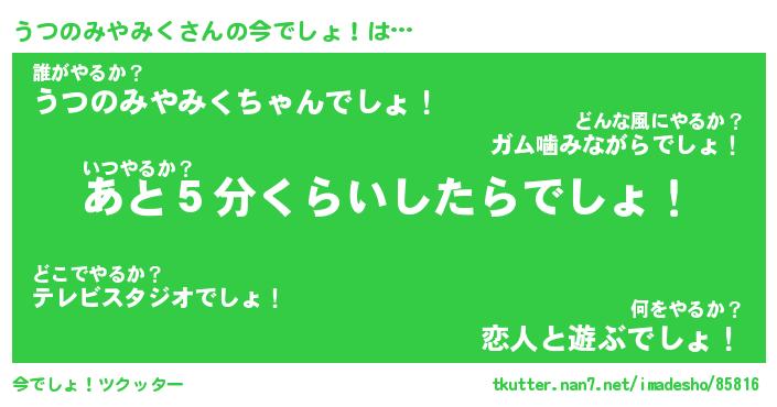 | 恥ずかしいあだ名 | 『プリティーうつのみやみく』『うつちん』 |