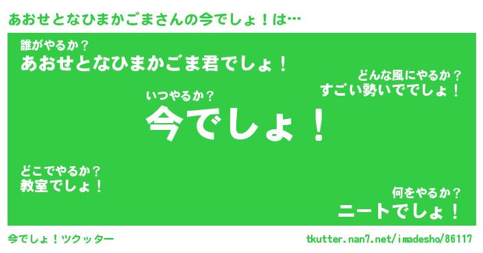 | 胡散臭い通販商品みたいなあだ名 | 『必ず成功する霊験あらたかなお札…その名も「あおせとなひまかごま」』 |