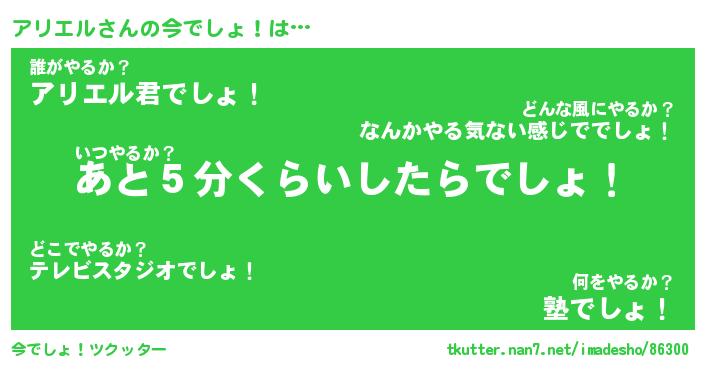 | 意味不明あだ名 | 『ペロリンアリエル』『永久保存アリエル』 |