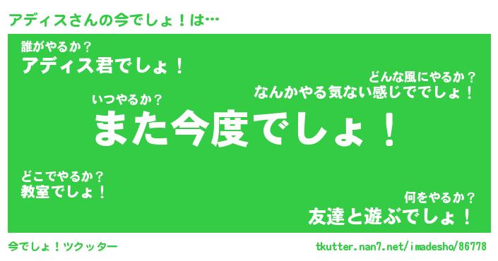 | 意味不明あだ名 | 『ペロリンアディス』『永久保存アディス』 |