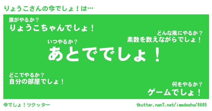 | ファンタジー風あだ名 | 『リョフェル』『エターナルリョウコー』 |