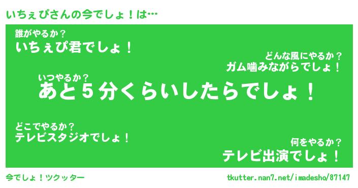 | 意味不明あだ名 | 『ペロリンいちぇぴ』『永久保存いちぇぴ』 |
