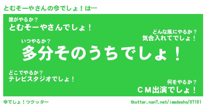 | 肩書あだ名 | 『とむそーや御曹司』『とむそーや大統領』 |
