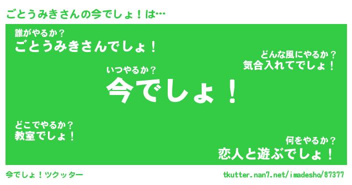 | ヒーロー風カッコイイあだ名 | 『スーパーゴトウミキ』『天弓騎士ゴト』 |
