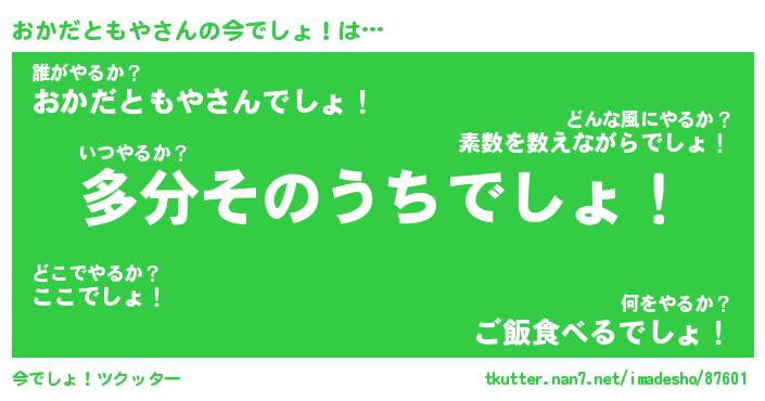 | 料理風あだ名 | 『節約★おかだともやと油揚げの玉子丼』 |