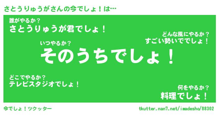 | 料理風あだ名 | 『ほっこり♪さとうりゅうがの味噌そぼろ煮』 |
