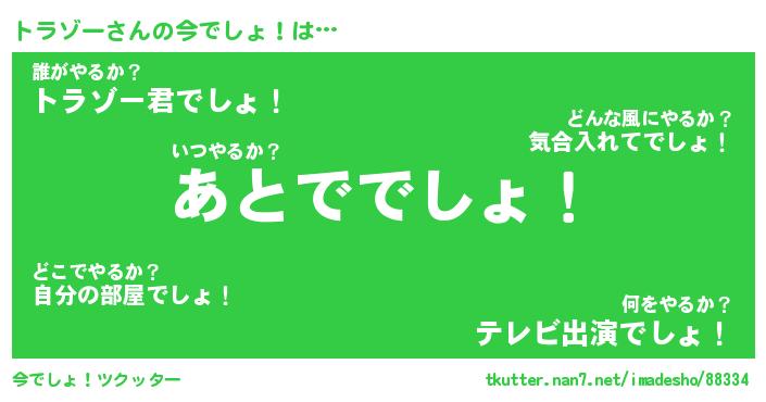 | ヒーロー風カッコイイあだ名 | 『スーパートラゾー』『幻影騎士トラ』 |