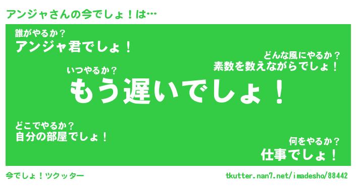 | 意味不明あだ名 | 『ペロリンアンジャ』『永久保存アンジャ』 |