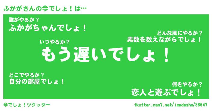 | 意味不明あだ名 | 『ペロリンふかが』『ふかがフォーエバー』 |