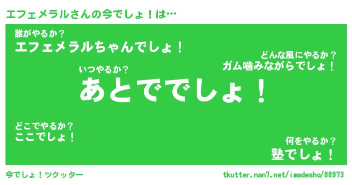 | 肩書あだ名 | 『エフェメラル社長』『エフェメラル先生』 |