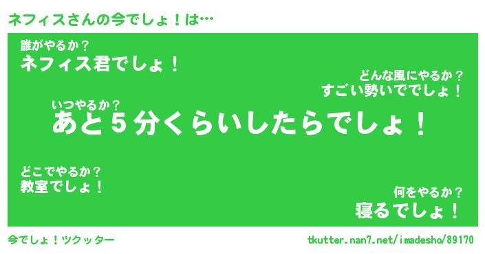 | ヘコむあだ名 | 『ネフにゅー』『なまこ酢』 |
