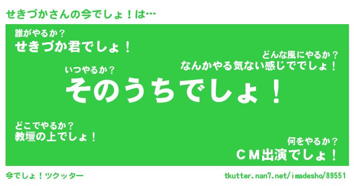 | 意味不明あだ名 | 『ペロリンせきづか』『永久保存せきづか』 |