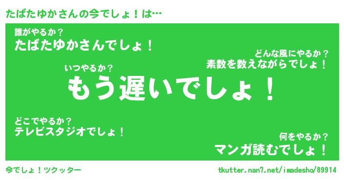 | 胡散臭い通販商品みたいなあだ名 | 『必ず成功するブレスレット…その名も「たばたゆか」』 |