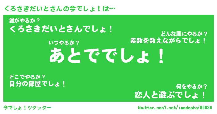 | 胡散臭い通販商品みたいなあだ名 | 『モテモテ間違いなし霊験あらたかなお札…その名も「くろさきだいと」』 |