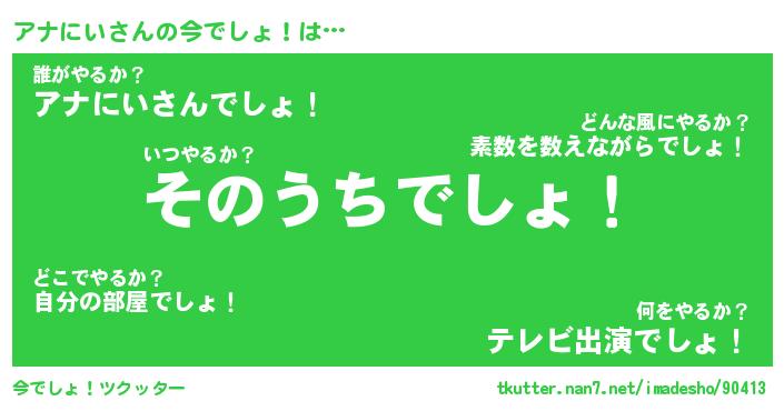 | 意味不明あだ名 | 『ペロリンアナにい』『永久保存アナにい』 |