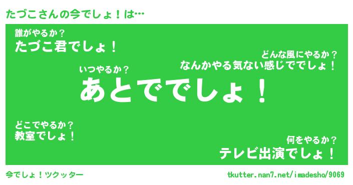 | ヘコむあだ名 | 『たづもー』『なまこ酢』『たづっ子』 |