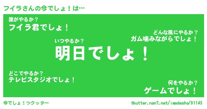 | ヒーロー風カッコイイあだ名 | 『スーパーフイラ』『ウルトラフイラマン』 |